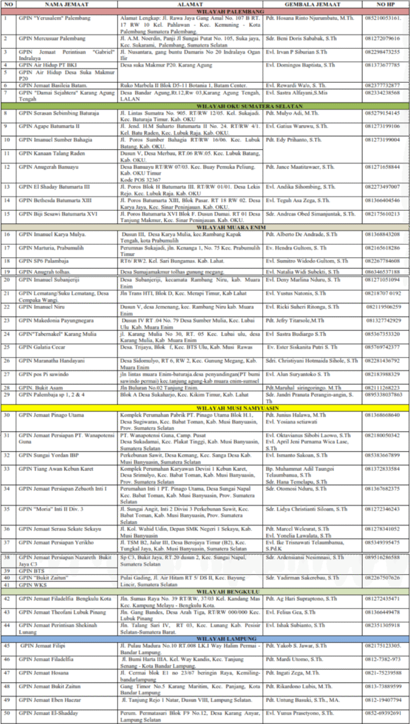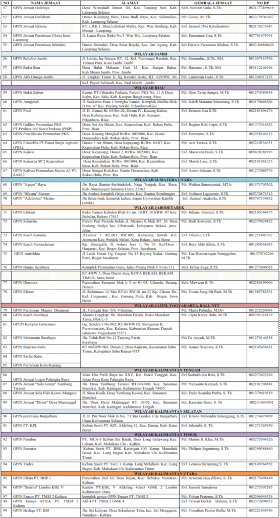 DAFTAR JEMAAT GPIN DI SELURUH INDONESIA